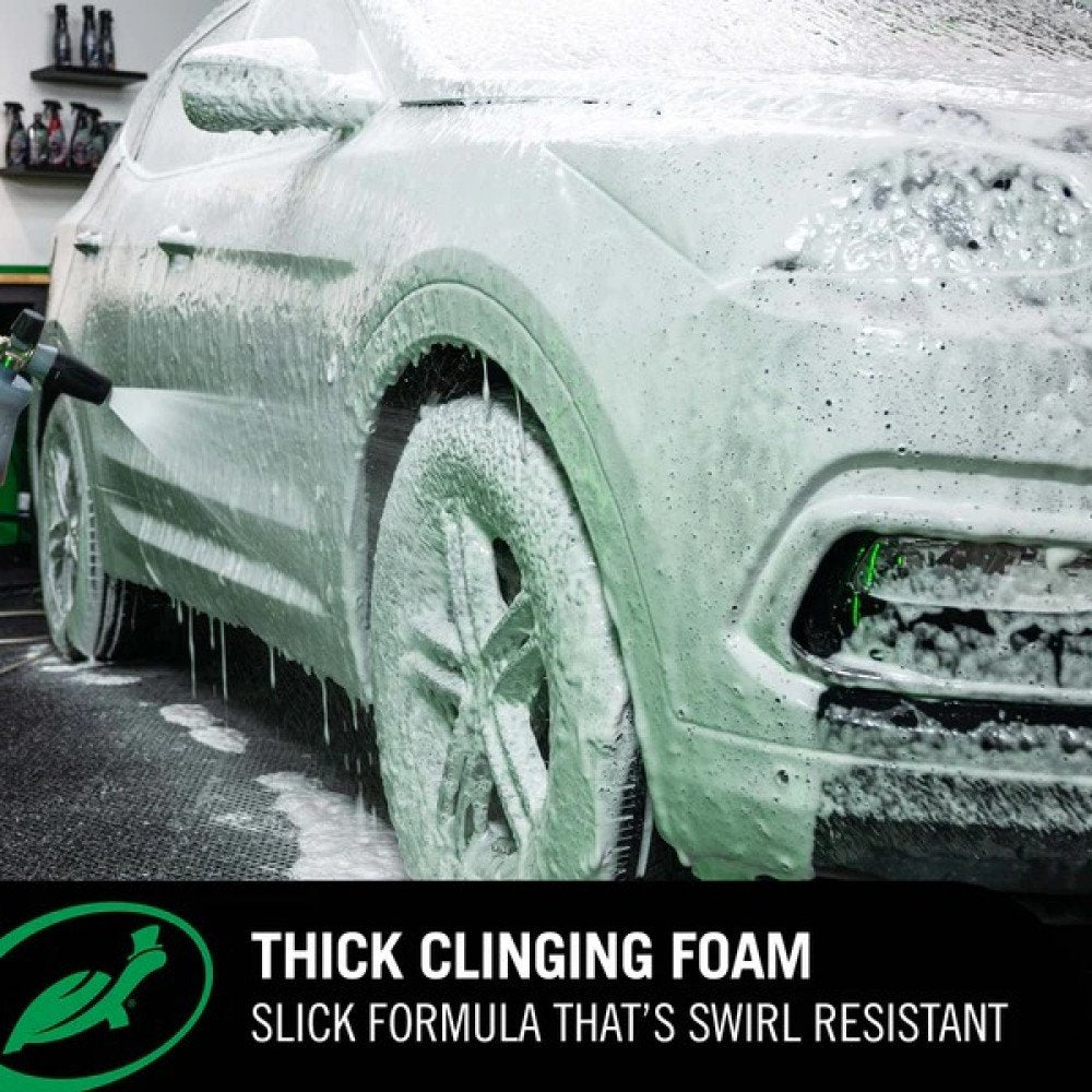Hybrid Solutions PRO Pure Wash pomaga zapobiegać zarysowaniom na dwa ważne sposoby. Po pierwsze, dzięki jedwabistej konsystencji i intensywnej pianie, która pomaga unieść i otoczyć ścierający brud na lakierze. Po drugie, w przeciwieństwie do innych pian do mycia samochodów, zawiera polimery Slick & Slide w zawiesinie, które ułatwiają rękawicy do mycia łatwe ślizganie się po lakierze bezbarwnym.